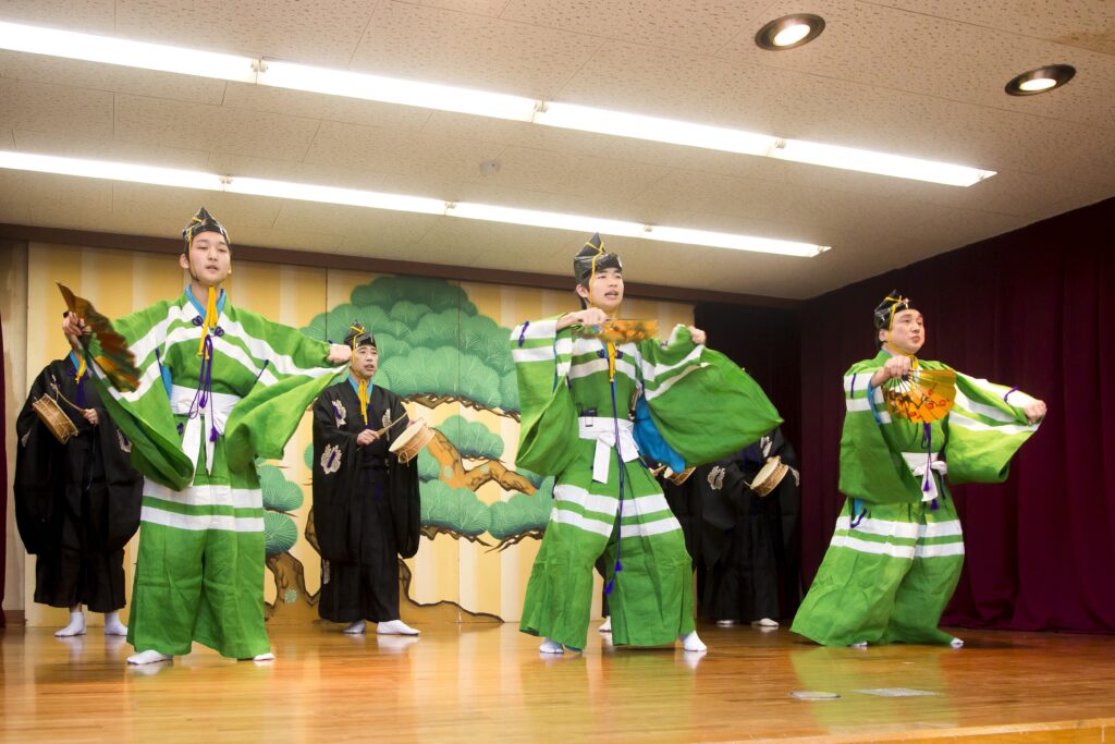 - 越前万歳(えちぜんまんざい)は、言葉(ことば)と 動(うご)きが 大切(たいせつ)な 伝統芸能(でんとうげいのう)です。見ている あいだは、おおきな こえで はなさないで ください。