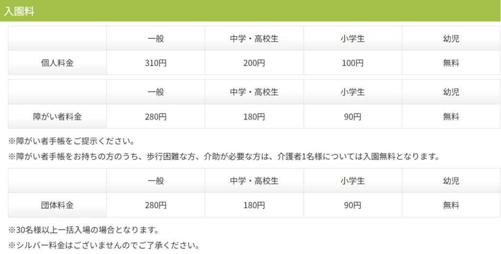 入園料(プラントピアに入るためのおかね)一般(おとな)310円
